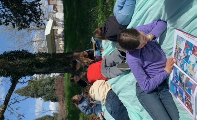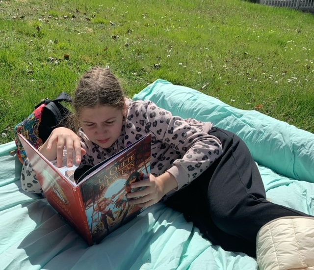 Il fait doux, alors on saisit l'occasion ... Lecture en extérieur pour l'atelier! Lecture plaisir ...